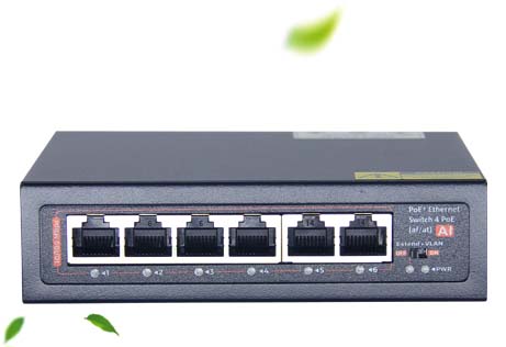 It provides both 802.3af/at PoE functions along with 4 x 10/100Base-TX ports featuring 15.4-watt 802.3af/30-watt 802.3at PoE in RJ-45 interfaces and extra 2 x 10/100Mbps UPLINK RJ-45 ports to keep a cascade connection with another switch or NVR as a kit for the administrators to centrally and efficiently manage the surveillance system in the local LAN and the remote site via Internet.