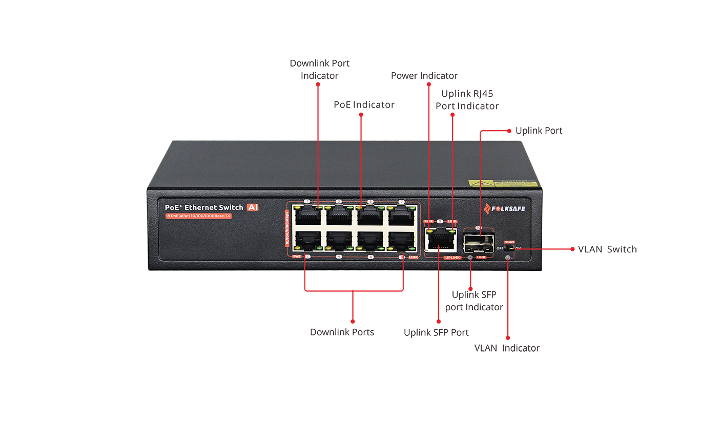 It provides both 802.3af/at PoE functions along with 4 x 10/100Base-TX ports featuring 15.4-watt 802.3af/30-watt 802.3at PoE in RJ-45 interfaces and extra 2 x 10/100Mbps UPLINK RJ-45 ports to keep a cascade connection with another switch or NVR as a kit for the administrators to centrally and efficiently manage the surveillance system in the local LAN and the remote site via Internet.